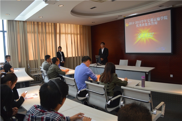 参与此次答辩的共有8个班级,13级的优秀代表班级有交工132、交运133、国航134、国航135,14级代表有交运141、物流142、新国航141、国航142。答辩会分为三个阶段,首先是各班级代表对各自班级基本情况、学习成就、思想建设等方面进行陈述。然后是提问环节,由评委们进行提问。在各个班级的介绍下,不难看出13级代表班级在学习以及思想建设上更突出一些,不仅学习上互帮互助,而且对思想建设很是关注,组团学习先进思想。当然14级在班级活动方面更加积极,其中国航142组织观摩过洋山深水港,对将来就业方向更加明确,意义深刻。最后是评委总结环节,刘建老师和郝海光老师分别就班级建设方面存在的问题提出了自己的看法,鼓励大家积极进取,并能通过这次答辩学到更多,优秀班级代表们也感触颇多。