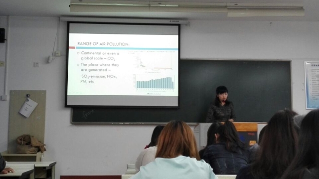 讲座从以下几个方面展开。首先朱墨老师阐述了航运联通的重要性,并分析了航运当前特点,提出了航运市场竞争激烈这一问题,引导在座同学深入思考。其次朱墨老师从船舶数量过多讲到环境污染问题,对比其他运输方式解释了海洋运输污染物总排量大的现状。紧接着朱墨老师从政府和企业两方面出发提出了减排的一系列可行措施。企业角度从技术组合和组织行为两方面分析,政府方向提出了碳交易这一新兴策略并分析了其利弊处。最后朱墨老师总结了本次讲座的主要内容,另外针对专业发展对参与讲座的同学提出了自己的建议。整场讲座中文讲授为主,辅之英文PPT,气氛活跃。