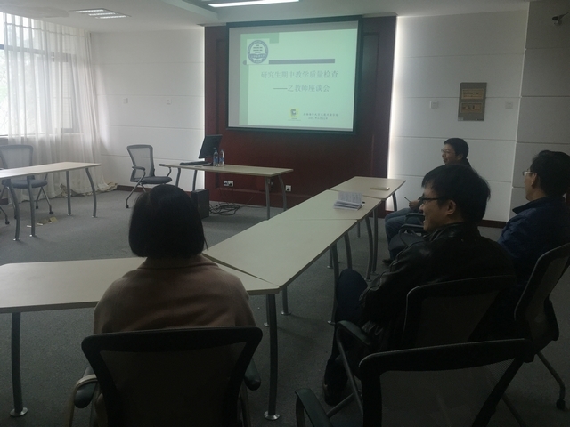 ur2young 在 30/11/2015 - 12:00 提交 当前位置唐人街影院 » 唐人街影院动态 唐人街影院 召开研究生期中质量检查之教师座谈会 ur2young 在 周一, 11/30/2015 - 13:56 提交 11月25日上午,唐人街影院 研究生期中质量检查之教师座谈会在交运楼209案例室举行,副院长韩皓教授主持。与会研究生导师和研究生任课教师对研究生教育管理等各方面的现状和今后的发展方向进行了积极地探讨,为学院今后研究生教育工作的开展提供了许多有效的建议和意见。