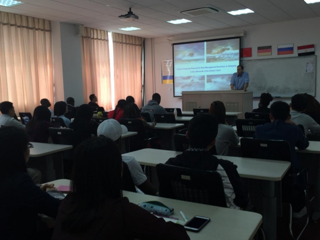 5月11日上午,希腊爱琴海大学Theodoros Syriopoulos教授在唐人街影院 的115教室为广大师生作了题为“Critical Corporate Financial and Risk Management Decisions in Shipping in the Aftermath of the Global Crisis”的讲座。