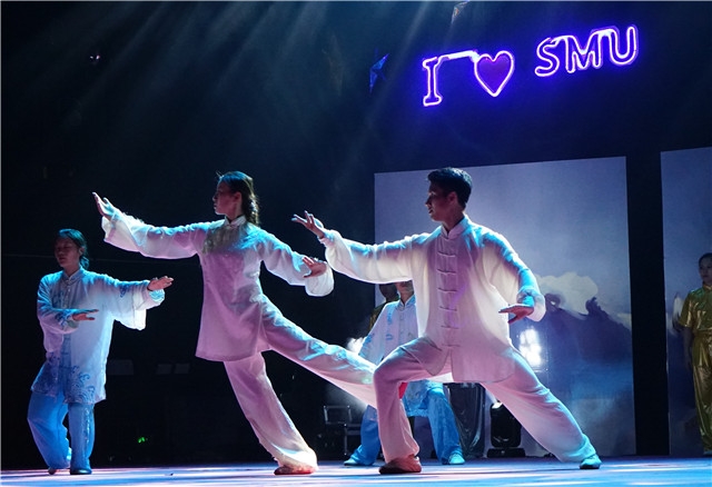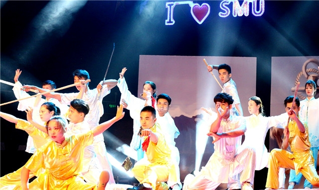 璀璨的灯光与动感的音乐带动着晚会的节奏,新生辅导员的惊艳登场,将全场气氛点燃,一曲高歌唱出了辅导员对新生大学生活的美好祝福;来自16级新生表演的节目让他们真正地融入到了大学的生活,为自己的大学画下了美丽的一笔;接着校舞蹈团用肢体表达的青春的活力,让现场观众沉浸到了对艺术的极致享受中;大礼堂的舞台上演着一个又一个精彩的演出,全场掌声不断,叫好连连;院长葛颖恩老师对新生的鼓励与祝福,更激励着全体新生向更好的自己奋斗;晚会最终以洋溢着中华文化的武术队的表演结束,这是海大学子用自己最好的年华对传统文化表达着敬意。