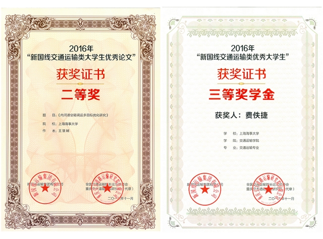 此外,本次论坛还宣布了“新国线教育发展基金”优秀学生及优秀论文的评选结果。我院王慧娴同学在李文娟老师指导下完成的论文《内河港空箱调运多目标优化研究》获得了优秀论文二等奖;我院费佚捷同学获得了优秀学生三等奖。