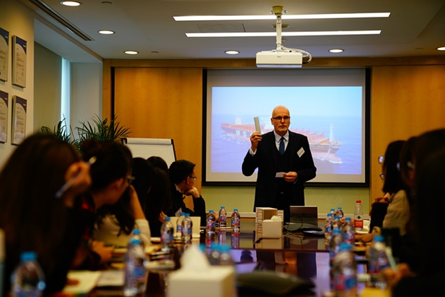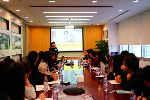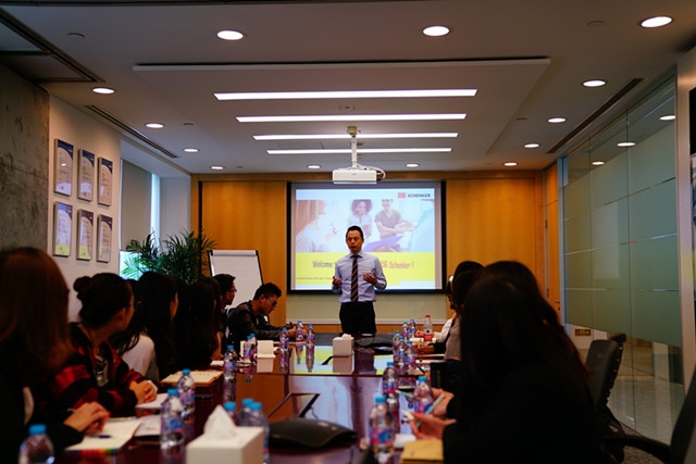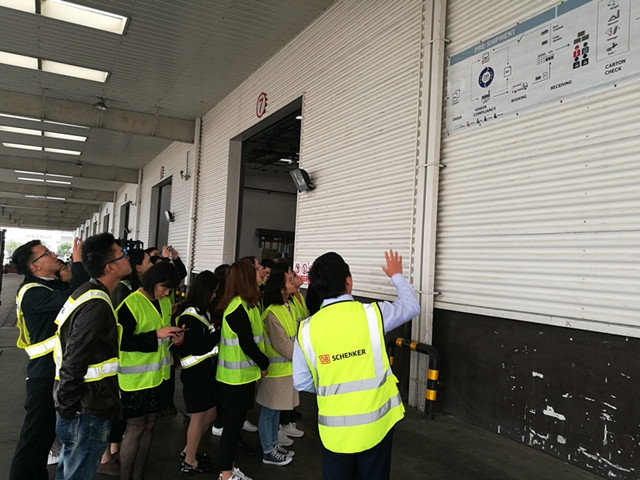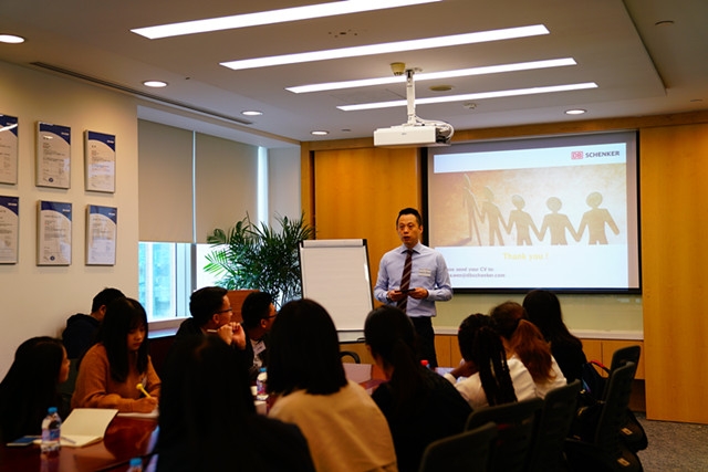 DB SCHENKER华中华北区总裁Joerg Hoppe首先向唐人街影院 的师生致热情洋溢的欢迎词。海运部总经理张毅分享了他在海运领域工作二十三年中身边成功人士的三点精髓:passion(激情)、proactivity(主动性)、persistence(坚持)。人事部经理文捷介绍了DB SCHENKER的历史、全球产业网络,人才在公司的晋升渠道和培养理念。接下来,欧洲线和美洲线操作经历带领同学们参观了操作部业务流程。交运10级校友,DB SCHENKER现pricing specialist沈靓雯分享了自己在公司工作3年的心路历程。下午,仓管部Sherman XU带领交运学院师生来到了芦潮港仓库参观了现代化仓库。