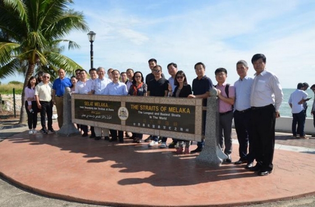 11月12日下午,代表团前往马六甲海峡。马六甲海峡是世界航运要冲,处在印尼苏门答腊岛和马来半岛之间,西北端连接缅甸海,东南端连接南海,全长约1080公里。由于该海峡处于赤道无风带,因此全年风平浪静的日子很多,加上海峡底质平坦,多为泥沙质,水流平缓,这种先天的自然条件和优越的地理位置,决定了来往商船大部分要经过这里(图2)。