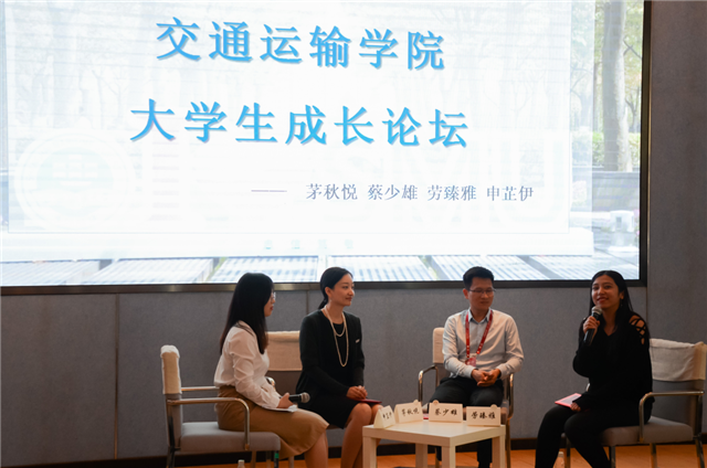 随后,大学生成长论坛正式开始,茅秋悦校友、蔡少雄校友和劳臻雅校友分别做自我介绍,并逐一分享他们再次回到母校的感受。面对在场的听众多是大一、大二的同学们,校友们也回忆了他们大学时代的社团生活和学习生活,耐心地与在场的观众畅谈他们的成长经历。此外,校友们还以自身丰富的职场经验向同学们分享初入职场的注意事项及如何撰写简历等。之后,他们分别为学弟学妹及母校送上真挚的祝福。