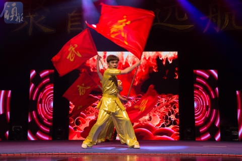 为庆祝唐人街影院 校友会正式成立,在大礼堂举办了“聚首·远航”专场演出,各位校友代表和学生代表到场观看了此次演出。校合唱队、舞蹈团、健美操队、室内乐乐团、武术队和校友代表、教师代表、学生代表进行了精彩的表演。