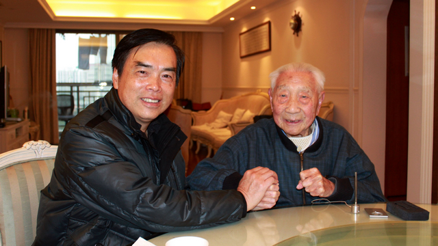 第一次见到欧老是在2009年百年校庆典礼现场,当年欧老已是94岁高龄,手柱拐杖,不用搀护,精神矍铄。然而,老人家因疾病,喉咙做过手术,发音完全要通过特殊的器械,由家人来“翻译”才能与外人交流。