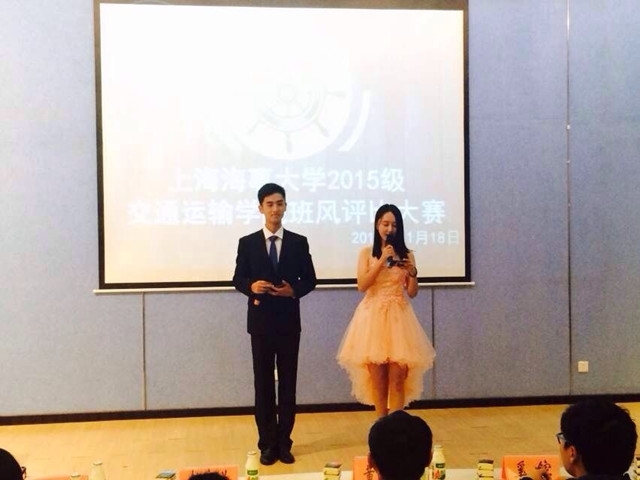 2015年11月22日晚,唐人街影院 2015级班风评比大赛在交运报告厅举行。辅导员都志亮老师、黄大为老师、赵宝兴老师及优秀学长学姐代表刘晨、奚镔、郑慧颖、戴绮欣、许佳华担任评委。在经过抽签后,各班代表按顺序上台对自班进行介绍。