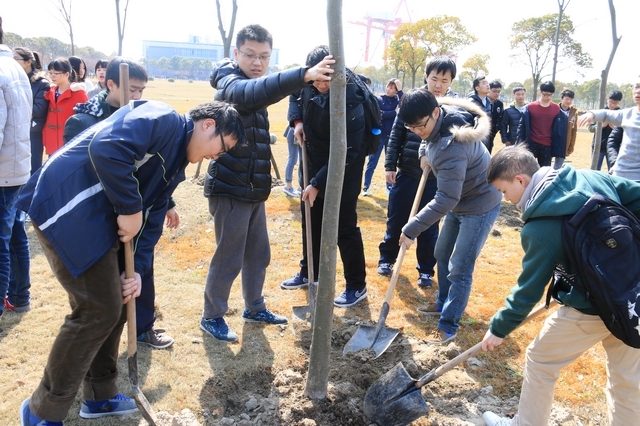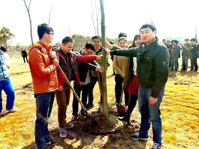 在植树节之际,管理13、专升本15学生于2016年3月16日下午1:00开展“绿满社区,美化校园”植树活动。此次活动在月亮湾旁的绿地上进行,同学们在后勤部绿化组工作人员的指导下种植了12棵树。首先,同学们认真地听绿化组工作人员讲解植树步骤,之后领取工具,分配树苗,5-8人一组开始种植。植树过程中,同学们个个精神抖擞干劲十足,不怕脏不怕累,高效率地完成了挖坑、插树苗、用铁锹填土等所有步骤,每个人脸上都洋溢着劳动的喜悦。种植结束后,同学们纷纷与自己种的树合影留念,站在生机勃勃的树苗前,莘莘学子更显意气风发。