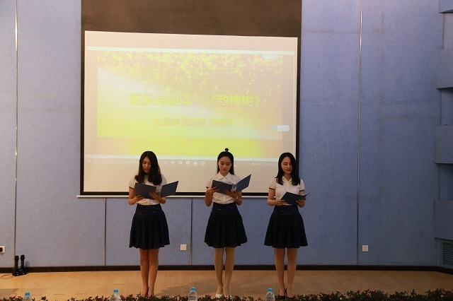 本次会议主要分为优秀队员表彰、才艺表演、授徽仪式及校长致辞四个环节。大会以播放视频短片《青春,在礼仪队》拉开了帷幕,三分钟的视频,记录了校礼仪队自2004年成立以来,这十三年里一路走来的点点滴滴,展现出了队员们对于这个组织的热爱。一张张活动照片、一届届队员合影、昔日礼仪活动的幕后花絮,当它们再次出现在大家面前时,无不打动了在场所有的观众。在优秀队员表彰环节中,李志鹏、梁亮、刘建三位老师依次上台,分别为2014级、2015级以及2016级的优秀队员颁发证书。在才艺表演环节,礼仪队成员桂晨曦、顾琳婷、刘维洲为大家带来了配乐诗朗诵《致橡树》,借此诗传递出当代女大学生对于平等自由、独立而有思想、热爱生活的向往。指导老师陈祯如随后也表达了自己对于队员们内外兼修、提升气质,热心服务的倍感欣慰之情,鼓励队员们今后更加积极主动、用微笑服务海大。在授徽仪式环节,副校长王海威亲自为各级女生队员代表及男生代表颁发徽章,并做出简短致辞。在致辞中,他欣喜地肯定了校礼仪队在过去的辛苦工作中的良好表现,同时,也对礼仪队提出了更高的要求,希望礼仪队作为唐人街影院 的形象代表,能够再接再厉,发扬“橡树”精神,根植海大,服务海大,展现出海大学子青春洋溢的精神风貌。