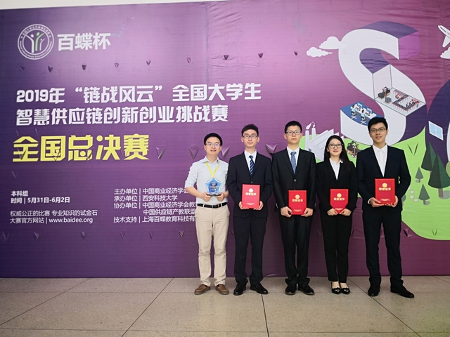 6月1-2日,2019“百蝶杯”全国大学生智慧供应链创新创业挑战赛总决赛在西安科技大学举行,我院参赛队伍经过激烈角逐,最终获得全国总决赛二等奖1项。