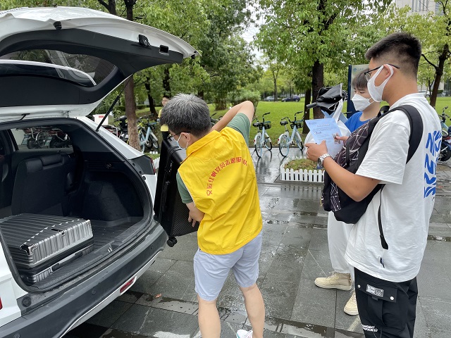 为了完成此次迎新工作,交通运输学院提前规划好了整个迎新安排,准备好了迎新物资,组织了大批师生志愿者。新生报到的两天,志愿者们早晨7:30就在指定地点集合,随后便分批有序地前往各个下车点等候新生的到来。在新生下车后,志愿者们主动帮助他们搬运行李,引导他们前往报到点。到达报到点,辅导员老师和志愿者们会帮助他们完成报到,并为他们答疑解惑,学生会还为他们拍下入学的第一张照片�9�10日,学院的教师党员服务队更是响应今年教师节主题“赓续百年初心,担当育人使命� 的号召,利用自己的私家车为新生搬运行李。在交通运输学院师生的共同努力下,两天的报到工作圆满有序地完成�
