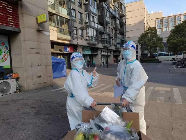 除了参加校内的防疫志愿者工作,唐人街影院 居家隔离的同学们也积极响应疫情防控号召,在做好个人防护的前提下,主动参加到所在社区的防疫志愿者工作中。国航201的毛欣芸同学就积极参与到所在社区的志愿服务活动中去,承担报刊杂志分发、扫描核酸二维码等工作;国航193的许睿凡同学也积极响应所在居委号召,在党员线上、线下双报道后担任了社区志愿者工作,帮助社区独居老人登记核酸二维码、帮助外国友人使用护照证件登记二维码,协助社区完成“应检尽检”工作;交运191班的朱陈霏、交运国际191班的陆雯怡同学还主动担任所在社区楼宇的楼长工作,协助居委完成楼宇核酸抗原检测、物资发放、数据统计等各项工作;国航193班于冰洁同学积极联系所在社区物业负责人,同社区仅有的其他两名党员一起先行组织开展志愿活动,后加入社区临时党支部并负责党支部的宣传工作以及社区困难群众的关爱工作,多次参与核酸检测服务、抗原以及物资发放、楼道病毒消杀、垃圾清理等各项工作,为社区人民群众积极奉献。