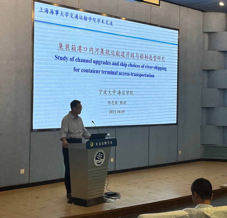 专家讲座在交运楼学术报告厅开讲。宁波大学教授,博士生导师杨忠振应邀来校为师生作了题为“集装箱港口内河集疏运航道升级与船舶选型研究”的学术报告。相关职能部门、学院负责人,师生代表等聆听了本次报告。